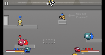 A unique take on the platform fighter genre where instead of fighting each other, you work together! Conquer the heights of the gym as you work your way up to the very top in this thrilling game that puts the platform in platform fighter.